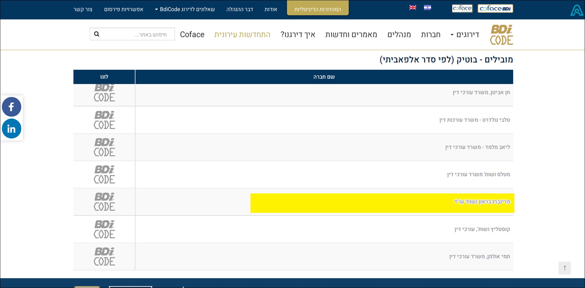 גאים להציג את דירוגי עורכי הדין BdiCode2021 בתחומים הבאים : עורכי דין תחומים עורכי דין משפט מנהלי